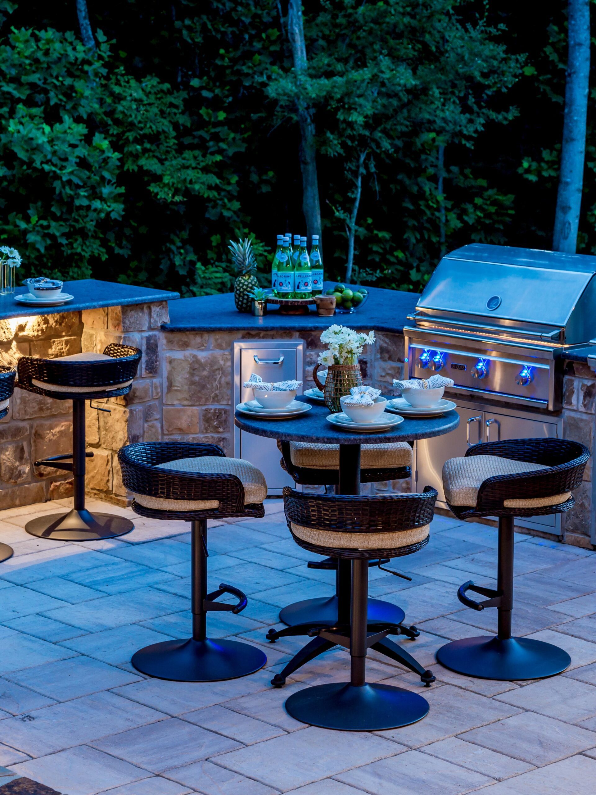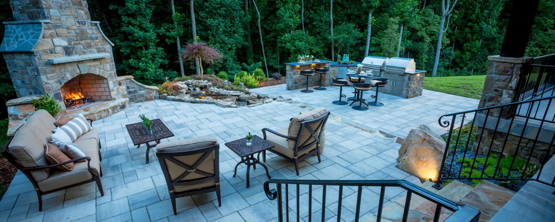 Firepits & Fireplaces, Landscape Lighting, Outdoor Kitchen, Outdoor Living, Pavers & Patios